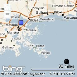 To begin with an understanding of the area, let's take a closer look at the geography surrounding the gusher, pictured above. The black rounded square represents the Oil Geyser. The 3 blue rounded squares represent the Grand Isle EPA Air Quality Monitoring stations. The stations can be found at the EPA's website [here]. Another important fact to know besides where I am getting my information from is what information I am searching for. I am looking for the hardly-discussed tons of toxic gas leaking from the oil gusher, called Volatile and Semi-Volatile Organic Compounds (knows as VOCs and SVOCs respectively) are, according to WikiPedia: